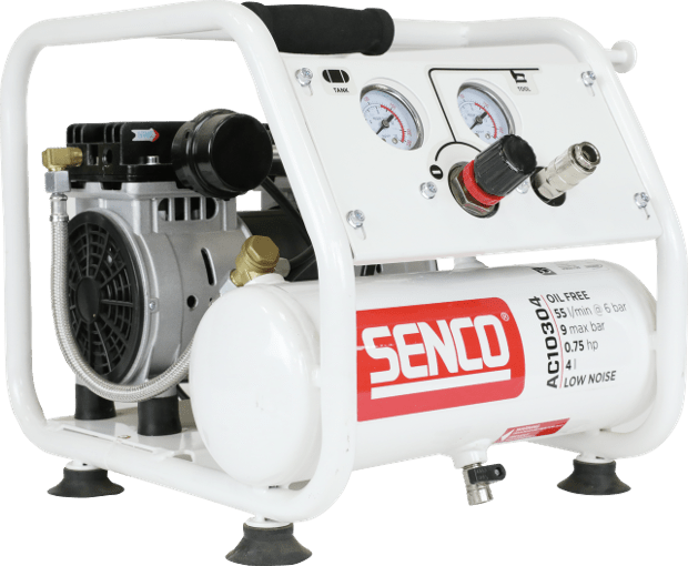 Datorită designului său ergonomic și dimensiunilor reduse, SENCO AC10304 este ușor de transportat și depozitat. Acest compresor este ușor de utilizat chiar și în spații restrânse, iar nivelul de zgomot redus îl face potrivit pentru utilizare în interior.